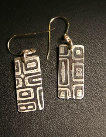Etched White Brass with Patina Earrings